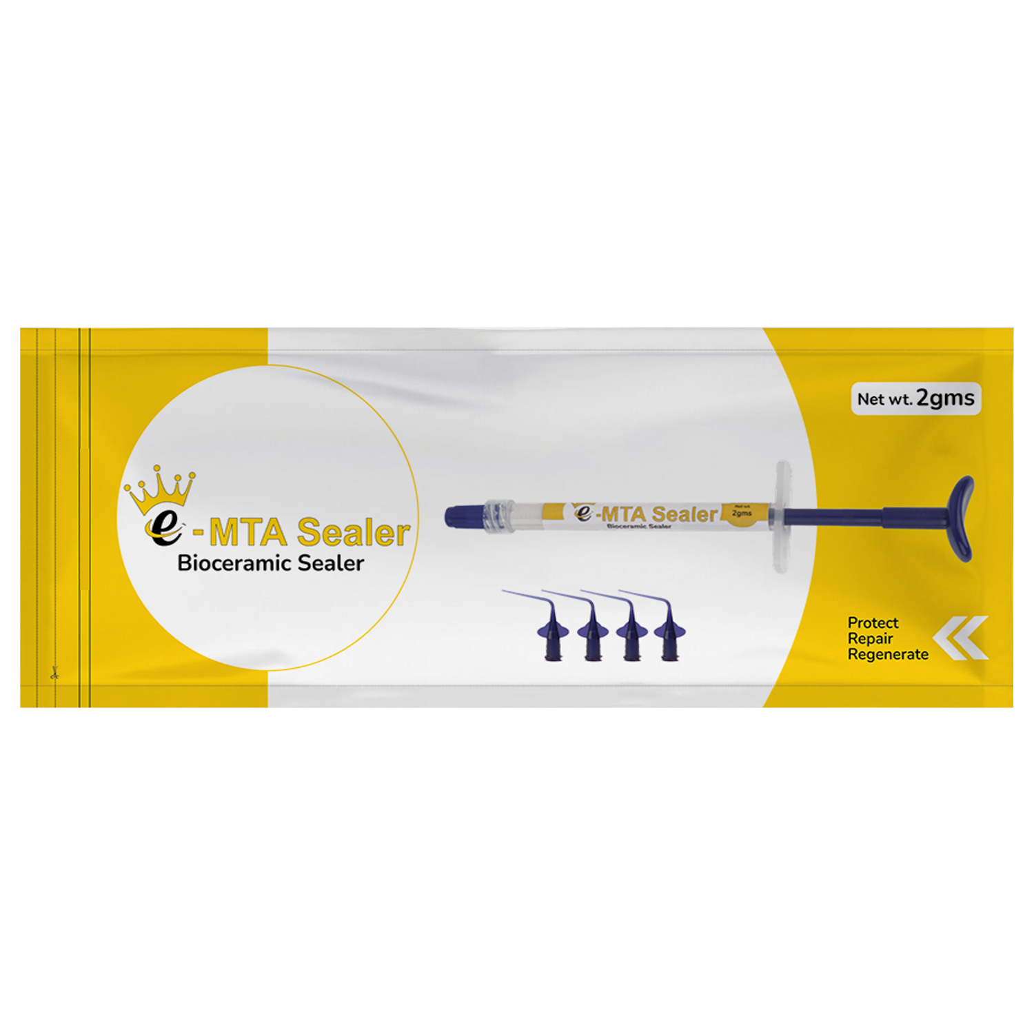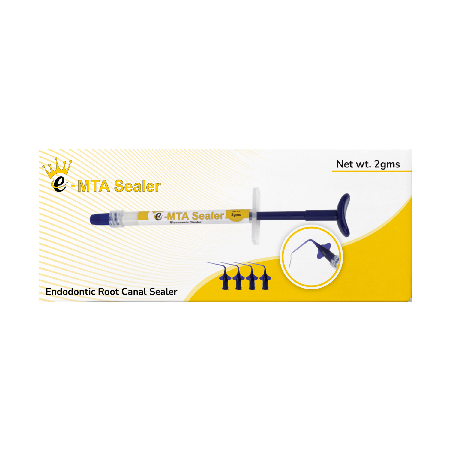 e-MTA sealer is a pre-mixed bio-ceramic, insoluble, and bioactive sealer consisting of very fine hydrophilic particles of several mineral oxides.